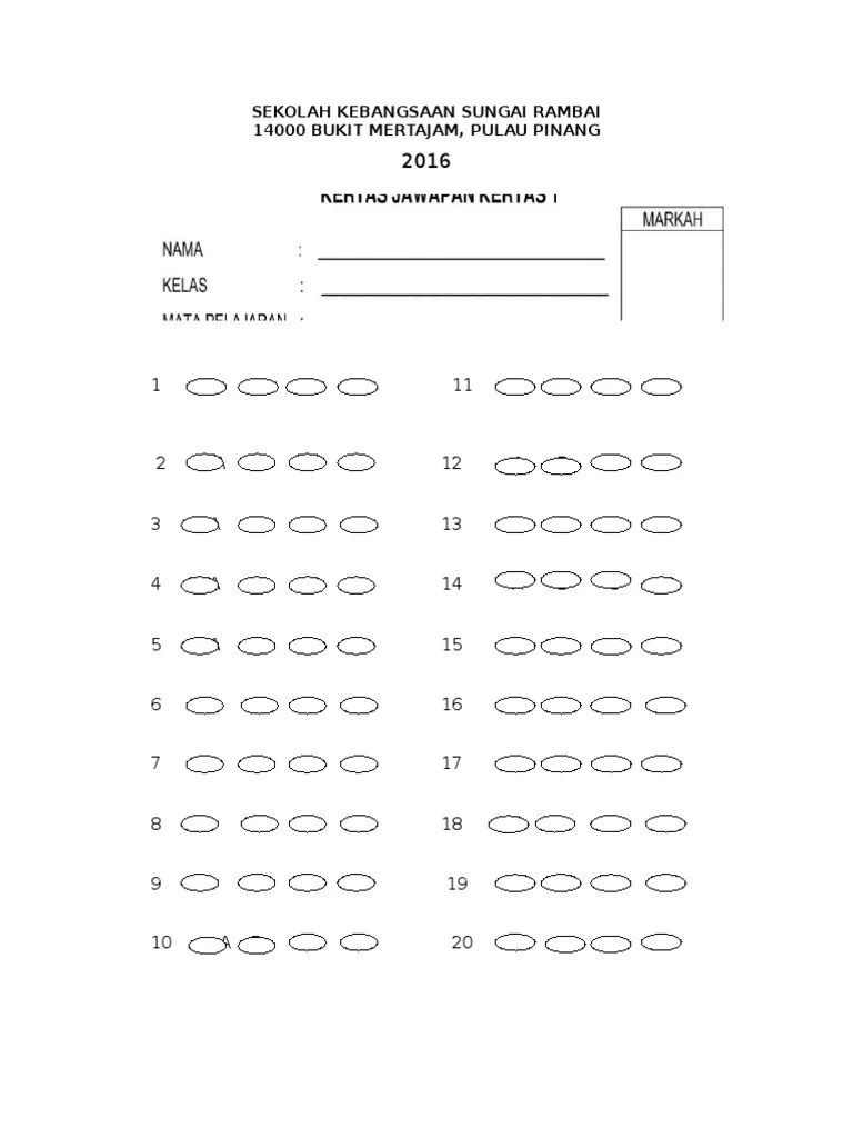 Kertas Jawapan Objektif 20 Soalan / Item Percubaan Sbpsk 2011 By Azira Azira Issuu
